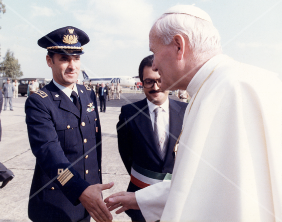 Il Papa vien accolto dal Comandante dell'Aeroporto Col pilota Bruno Servadei